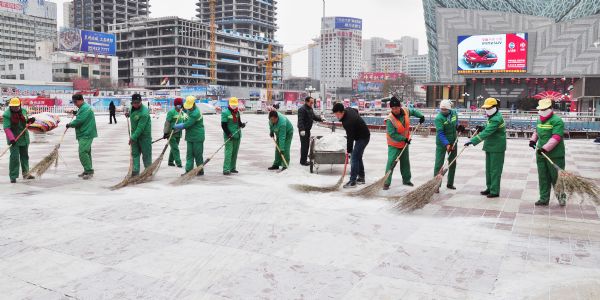 雖然雪下的不大,但氣溫驟降、風(fēng)雪交加還是給掃雪人員帶來(lái)了諸多不便,可這沒有影響各項(xiàng)目部團(tuán)隊(duì)清理積雪的熱情,在項(xiàng)目經(jīng)理的帶領(lǐng)下,各班組成員對(duì)自己主管的片區(qū)進(jìn)行認(rèn)真清掃,確保能夠在業(yè)主上班前讓各主干路內(nèi)的行人及車輛暢通無(wú)阻,把下雪帶來(lái)的影響降至最低。