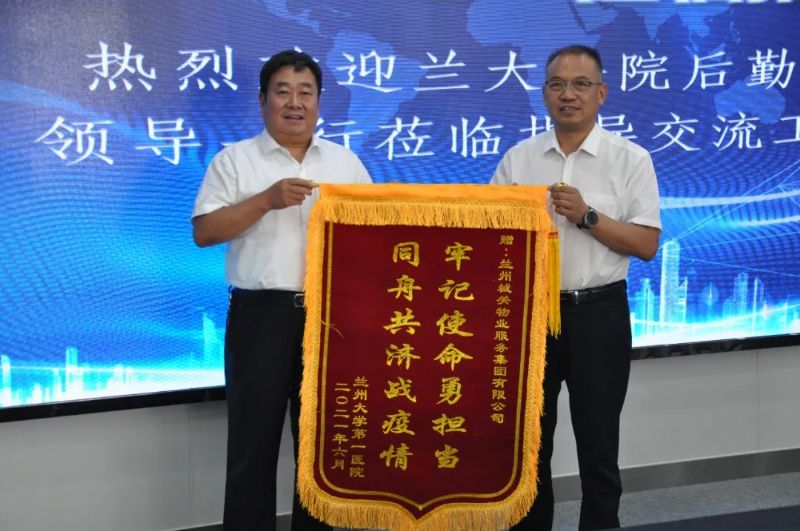 蘭州大學(xué)第一醫(yī)院后勤保障處陳處長(zhǎng)一行人專(zhuān)程來(lái)到蘭州城關(guān)物業(yè)服務(wù)集團(tuán)有限公司,將一面寫(xiě)有“牢記使命勇?lián)?dāng) 同舟共濟(jì)戰(zhàn)疫情”的錦旗贈(zèng)予蘭州城關(guān)物業(yè)服務(wù)集團(tuán)有限公司,以此表達(dá)對(duì)城關(guān)物業(yè)的感謝和認(rèn)可。