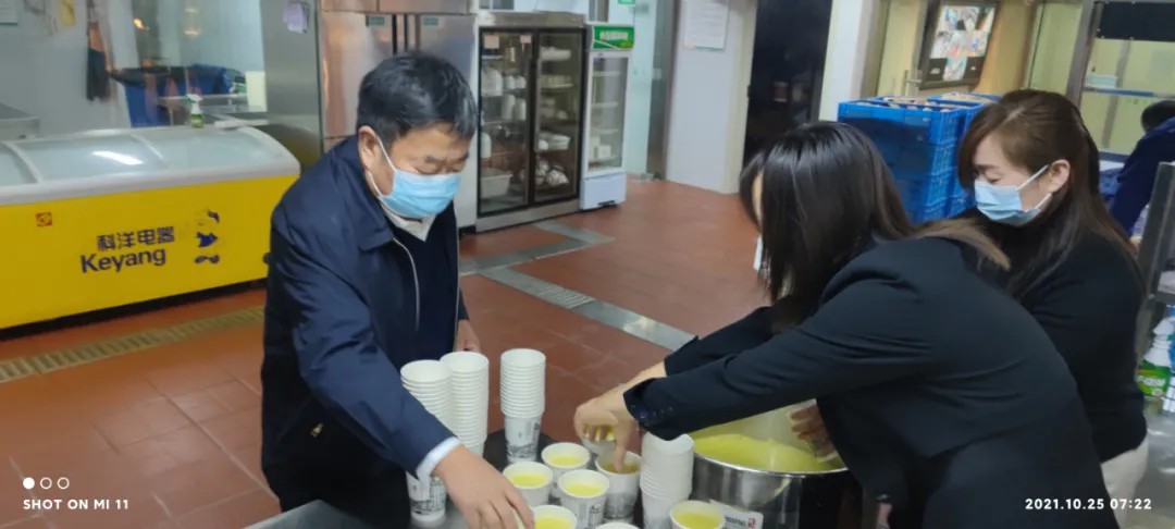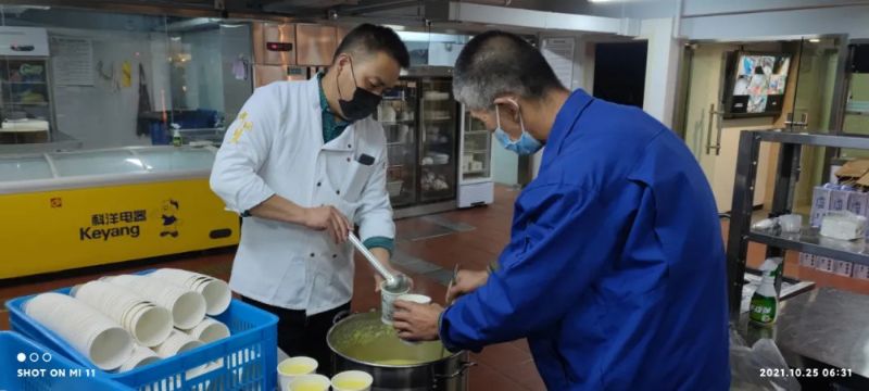 為了確保餐飲能夠及時(shí)送達(dá)各防疫點(diǎn),城關(guān)物業(yè)董事長楊民召從早上5:30開始就帶領(lǐng)大家在配餐間忙碌起來。他一邊配餐,一邊不停地看時(shí)間,只為確保防疫一線的工作人員吃上熱乎可口的飯菜。他說到,“我們的愛心餐要一直送下去,絕對(duì)不能讓辛苦在防疫一線的工作人員在吃飯上有后顧之憂。”