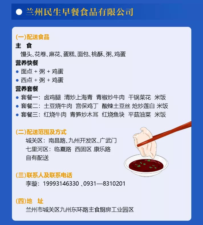 為了緩解當(dāng)前蘭州地區(qū)團(tuán)體就餐需求加大、居民外出就餐不便的問題,甘肅省商務(wù)廳指導(dǎo)蘭州市內(nèi)規(guī)模較大、防控措施到位、食品安全達(dá)標(biāo)的食品生產(chǎn)企業(yè)和餐飲企業(yè)開展餐飲配送服務(wù),經(jīng)過嚴(yán)格挑選,蘭州民生早餐食品有限公司確定為疫情期間餐飲配送企業(yè)。此次,城關(guān)物業(yè)與民生早餐共同為隔離小區(qū)、防疫點(diǎn)位、團(tuán)體單位及社會(huì)大眾配送餐品,全力滿足重點(diǎn)區(qū)域疫情期間基本生活需求。