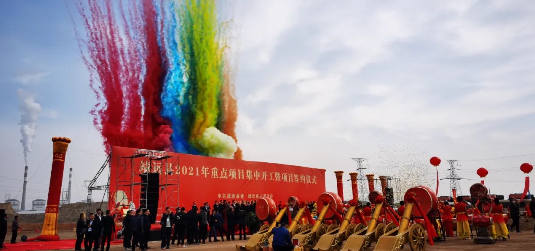 儀式現(xiàn)場(chǎng)開(kāi)工項(xiàng)目共54項(xiàng),涉及能源開(kāi)發(fā)、基礎(chǔ)設(shè)施、綠色工業(yè)、文旅融合、農(nóng)業(yè)升級(jí)等多個(gè)領(lǐng)域。共簽約項(xiàng)目15個(gè),簽約總金額212.8億元。白銀市委書(shū)記蘇君表示,希望通過(guò)這次簽約,引進(jìn)一些優(yōu)秀企業(yè),增加農(nóng)戶(hù)收入,推進(jìn)鄉(xiāng)村產(chǎn)業(yè)扶貧,帶動(dòng)靖遠(yuǎn)縣經(jīng)濟(jì)發(fā)展。